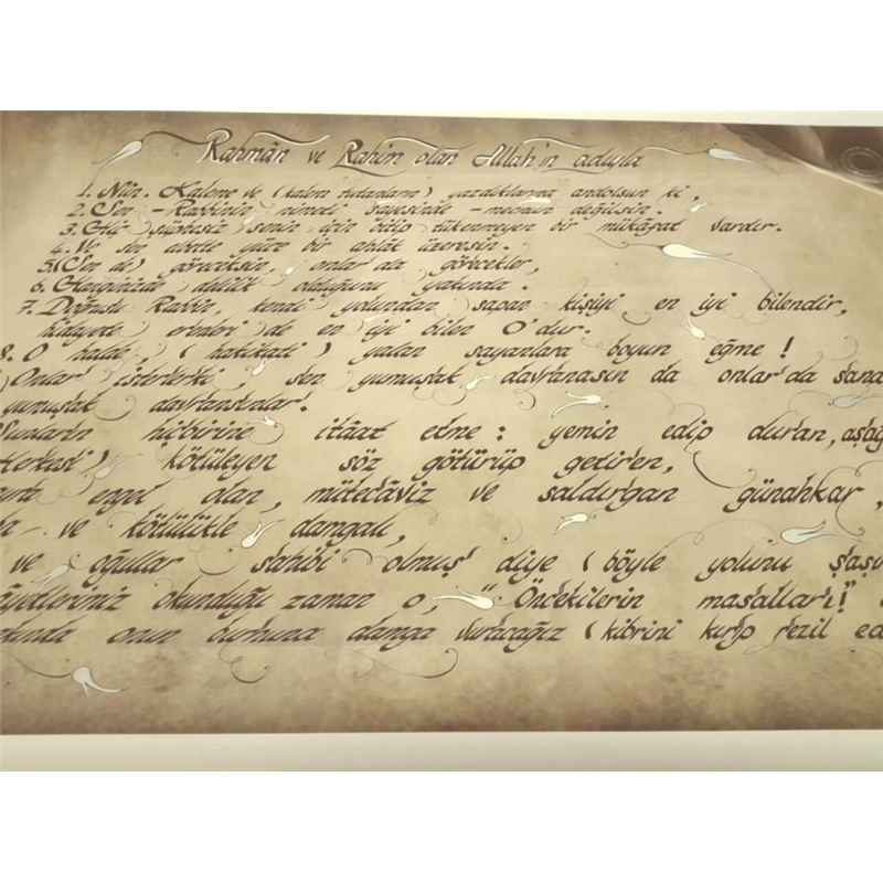 Ürün Eskitme ve Model Fon Kağıt Üzerine Kısa İsim veya Uzun yazı şeklinde Osmanlıca, Arapça, Türkçe şekilde Kaligrafi Yazılabilmektedir. Uzun yazı ve diğer diller için bizi arayarak fiyat alabilirsiniz.