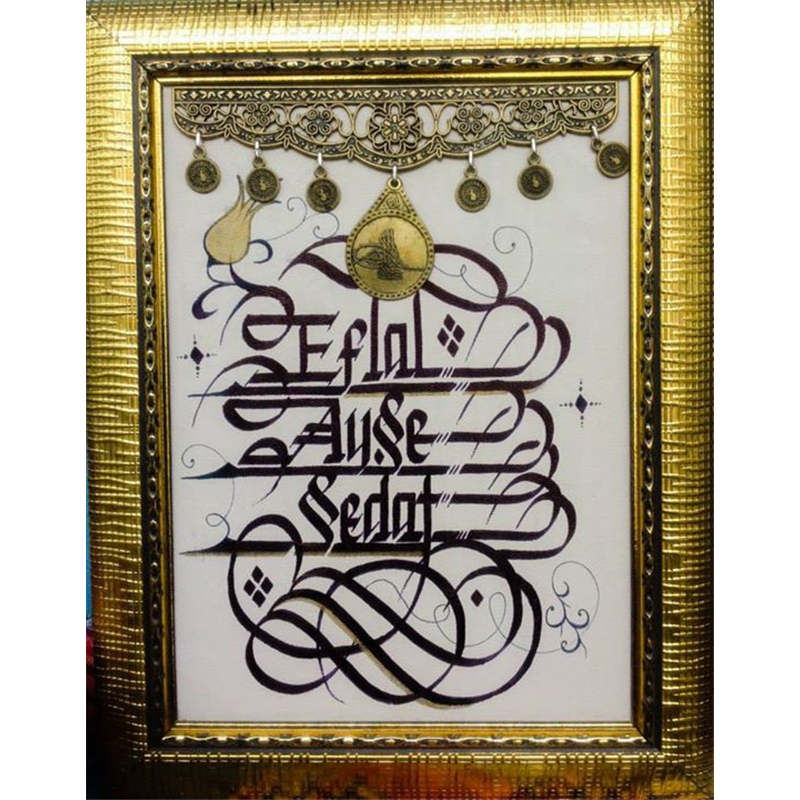 Ürün Tablolu - Çerçeveli Fon Kağıt Üzerine Kısa İsim veya Uzun yazı şeklinde Osmanlıca, Arapça, Türkçe şekilde Kaligrafi Yazılabilmektedir. Uzun yazı ve diğer diller için bizi arayarak fiyat alabilirsiniz.