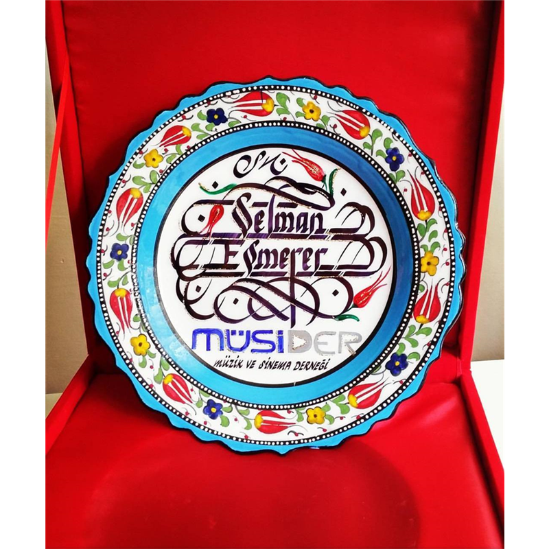 Ürün Çini Tabak Üzerine Kısa İsim veya Uzun yazı şeklinde Osmanlıca, Arapça, Türkçe şekilde Kaligrafi Yazılabilmektedir. Uzun yazı ve diğer diller için bizi arayarak fiyat alabilirsiniz.