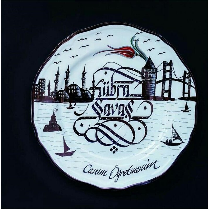 Ürün Çini Tabak Üzerine Kısa İsim veya Uzun yazı şeklinde Osmanlıca, Arapça, Türkçe şekilde Kaligrafi Yazılabilmektedir. Uzun yazı ve diğer diller için bizi arayarak fiyat alabilirsiniz.