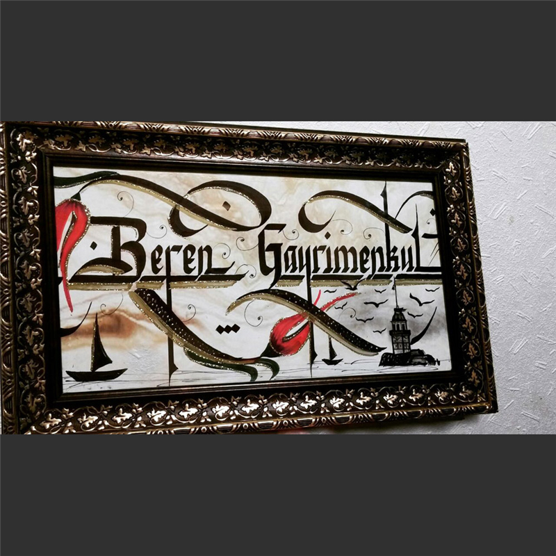 Ürün Tablolu - Çerçeveli Fon Kağıt Üzerine Kısa İsim veya Uzun yazı şeklinde Osmanlıca, Arapça, Türkçe şekilde Kaligrafi Yazılabilmektedir. Uzun yazı ve diğer diller için bizi arayarak fiyat alabilirsiniz.