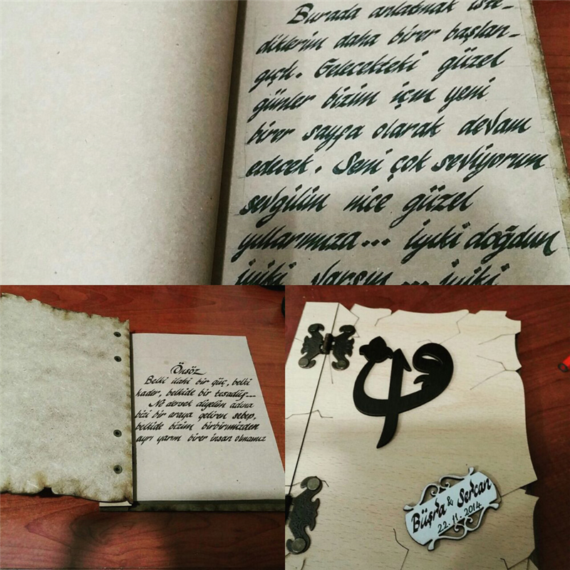 Otantik Eskitme Tarzı Defter - Kapağı Kaligrafi Yazılı