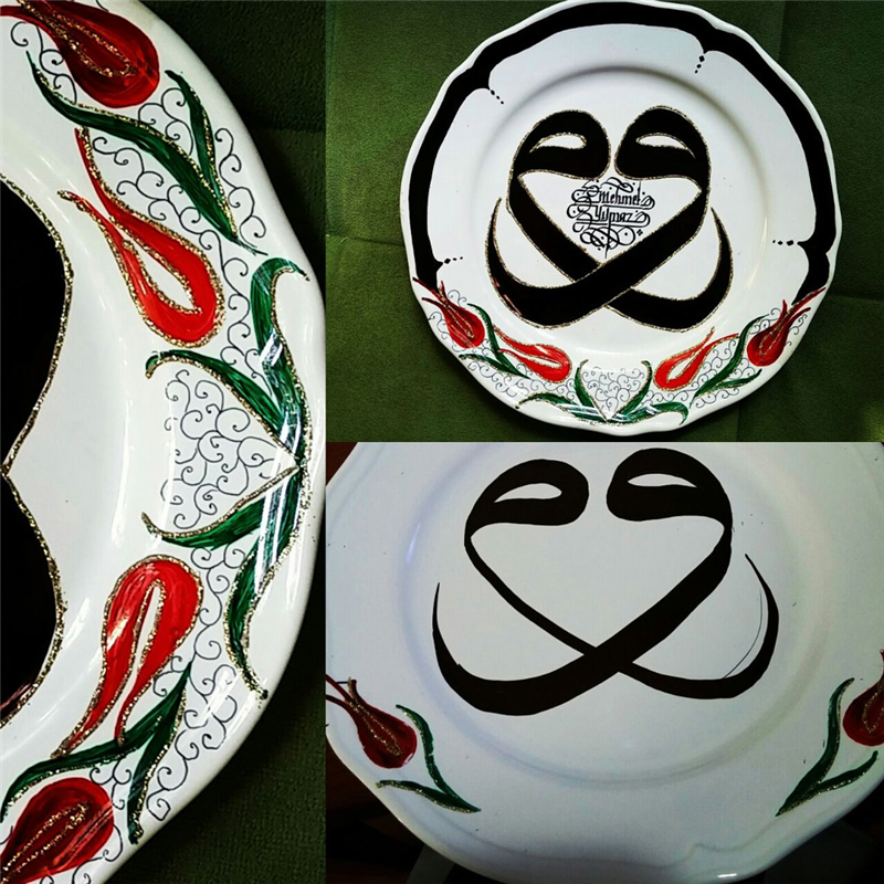 Ürün Seramik Tabak Üzerine Kısa İsim veya Uzun yazı şeklinde Osmanlıca, Arapça, Türkçe şekilde Kaligrafi Yazılabilmektedir. Uzun yazı ve diğer diller için bizi arayarak fiyat alabilirsiniz.